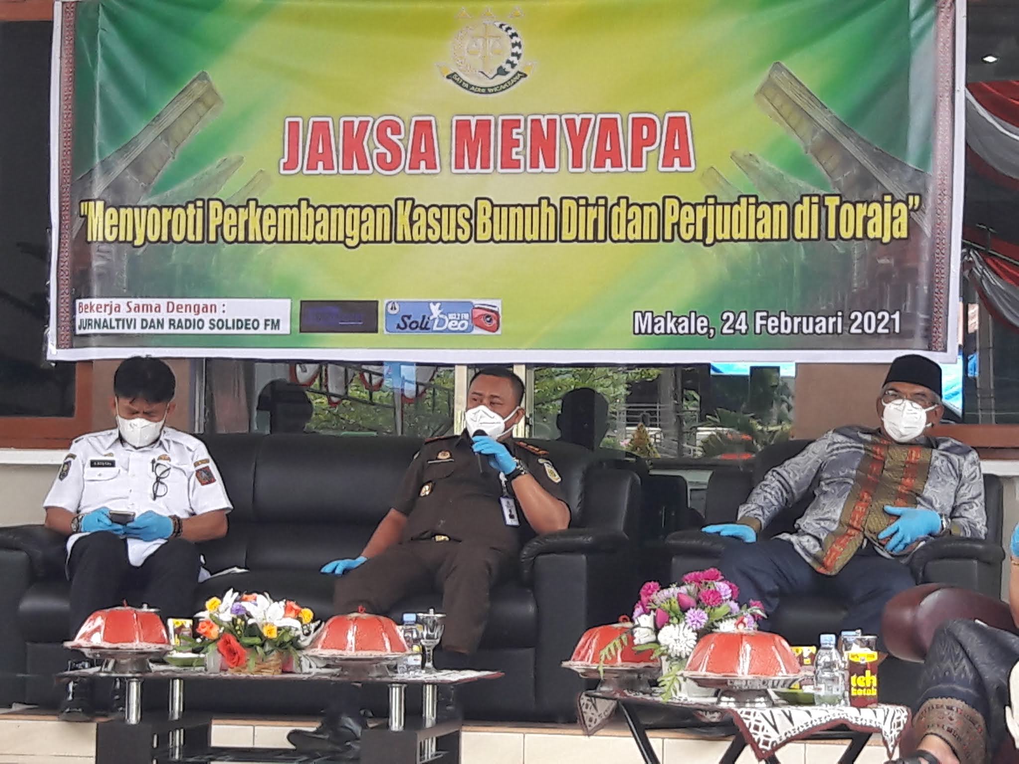 Pada hari Rabu tanggal 24 Februari 2021 sekitar pukul 10.00 WITA bertempat di Teras Kejaksaan Negeri Tana Toraja telah diadakan kegiatan Jaksa Menyapa dengan tema “Menyoroti Perkembangan Kasus Bunuh Diri Dan Perjudian Di Toraja”