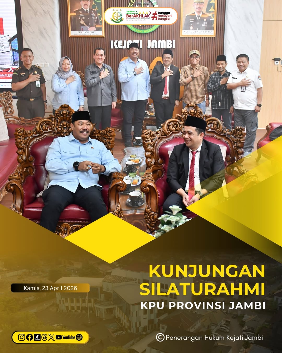 Kepala Kejaksaan Tinggi Jambi, Sugeng Hariadi, S.H., M.H., menerima kunjungan kerja dan silaturahmi dari Komisi Pemilihan Umum (KPU) Provinsi Jambi pada Kamis (23/04/2026).