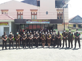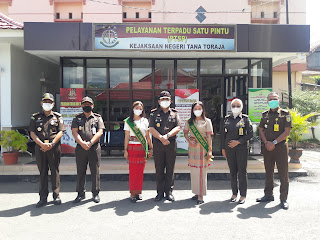 Senin (19/04/2021) Wakil Kepala Kejaksaan Tinggi Sulawesi bersama rombongan Tim Penilai WBK dan WBBM melakukan Kunjungan Kerja ke Kejaksaan Negeri Tana Toraja. Kunjungan kerja ini juga merupakan agenda Kejaksaan Tinggi Sulawesi Selatan untuk melihat sejauh mana pelaksaanaan manajerial, apakah telah sesuai Standar Operasional Prosedur (SOP) yang ada dan juga penilaian apakah Kejaksaan Negeri Tana Toraja dapat dan layak untuk diusulkan menjadi Satuan Kerja yang mendapat predikat WBK dan WBBM. Pada kunjungan ini Wakajati dan Tim Penilai WBK dan WBBM juga melihat kondisi kantor, mengecek administrasi, perlengkapan kantor yang ada di Kejaksaan Negeri Tana Toraja. Setelah mengecek keadaan lapangan , Wakil Kepala Kejaksaan Tinggi Selawesi Selatan memberikan pengarahan terhadap jajaran Kejaksaan Negeri Tana Toraja agar terus meningkatkan kinerja dengan cara menjaga integritas, kepercayaan masyarakat dan independensi dalam melaksanakan tugas dan tanggung jawab. Jangan hanya terpaku pada keterbatasaan Sumber Daya Manusia (SDM), namun bagimana memaksimalkan potensi SDM yang ada. Dalam pengarahan tersebut Wakajati menyampaikan agar semua jajaran Kejaksaan Negeri Tana Toraja harus tetap mendukung pelaksaanaan Reformasi Birokrasi di tubuh Kejaksaan Republik Indonesia dan membangun Zona Integritas Kejaksaan Negeri Tana Toraja menuju WBK dan WBBM.